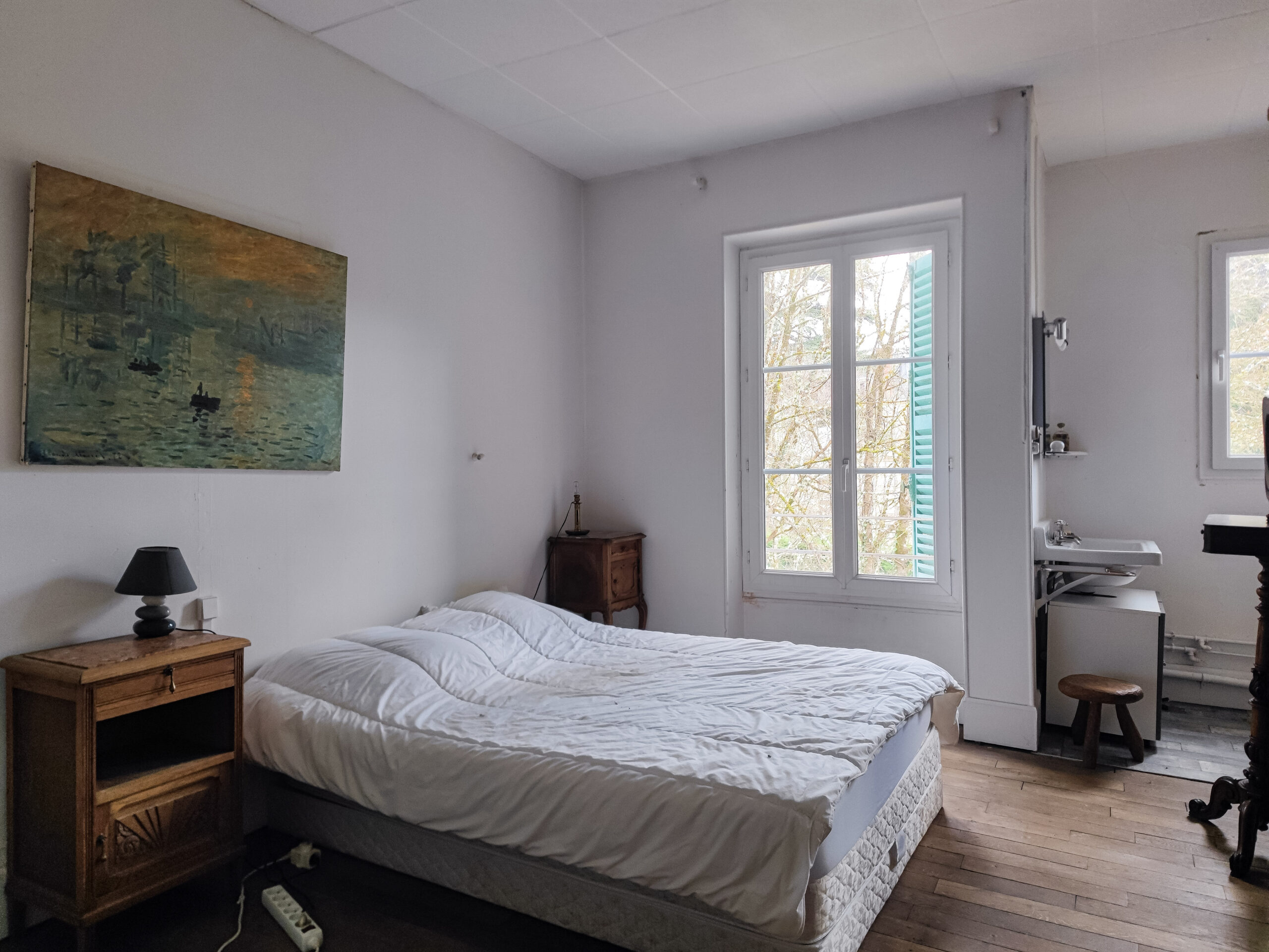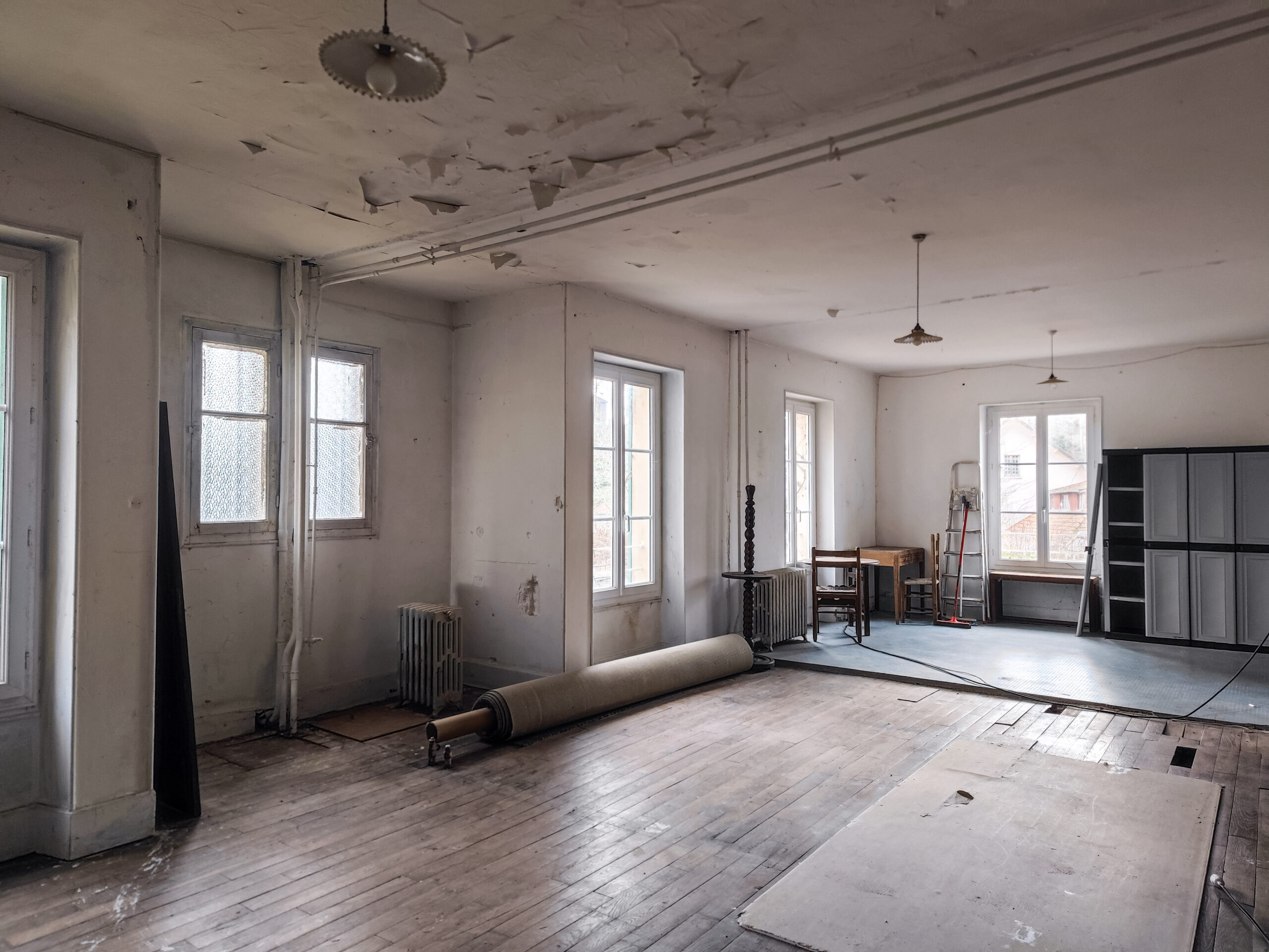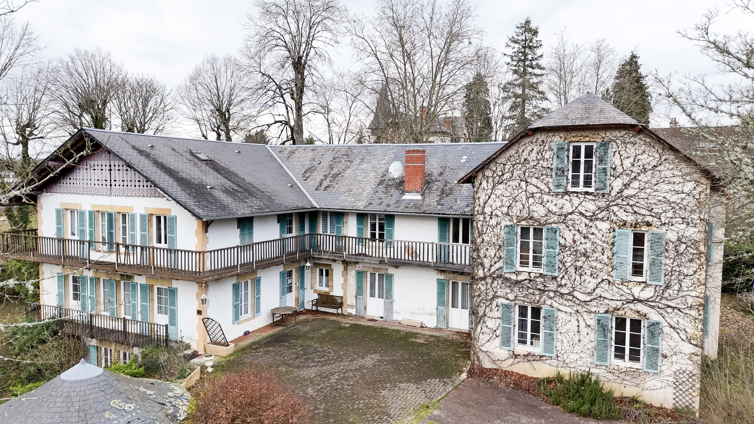 La bâtisse est divisée en deux parties, avec dans l’aile gauche et au centre du bâtiment l’habitation principale. Celui-ci se compose d’une vaste entrée desservant plusieurs pièces spacieuses, dont un séjour / salle à manger de plus de 30m² ainsi qu’une cuisine de 27 m². Une ancienne configuration professionnelle (bureaux, salle d’attente, salle d’examen) offre de véritables possibilités de transformation supplémentaires : création de suites, activité libérale ou encore logements pour curistes. À l’étage, cette partie propose quatre chambres de 12 à 22 m², deux salles de bain, deux WC et de vastes dégagements.