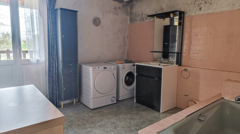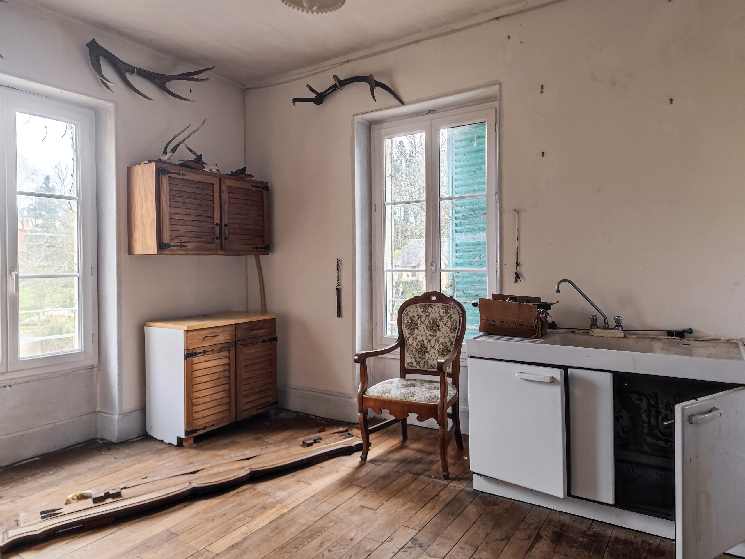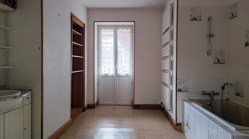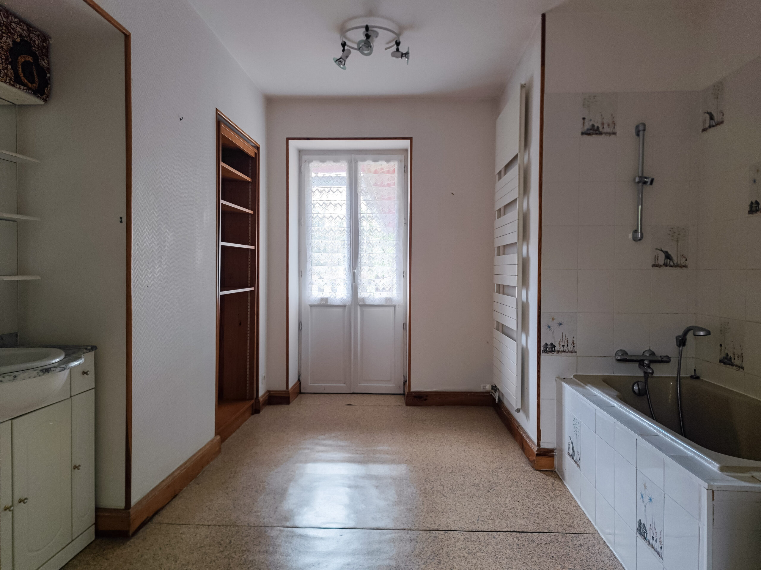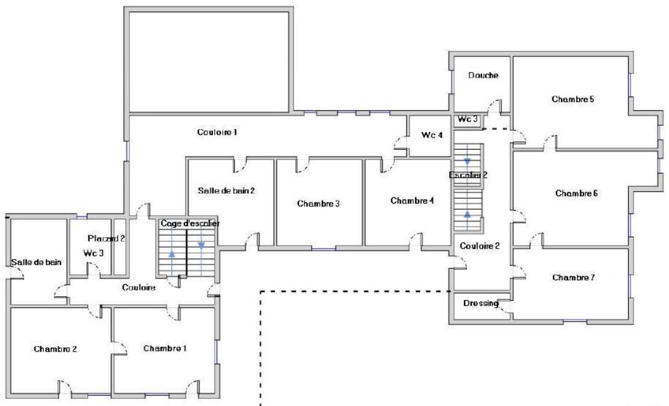 La bâtisse est divisée en deux parties, avec dans l’aile gauche et au centre du bâtiment l’habitation principale. Celui-ci se compose d’une vaste entrée desservant plusieurs pièces spacieuses, dont un séjour / salle à manger de plus de 30m² ainsi qu’une cuisine de 27 m². Une ancienne configuration professionnelle (bureaux, salle d’attente, salle d’examen) offre de véritables possibilités de transformation supplémentaires : création de suites, activité libérale ou encore logements pour curistes. À l’étage, cette partie propose quatre chambres de 12 à 22 m², deux salles de bain, deux WC et de vastes dégagements.