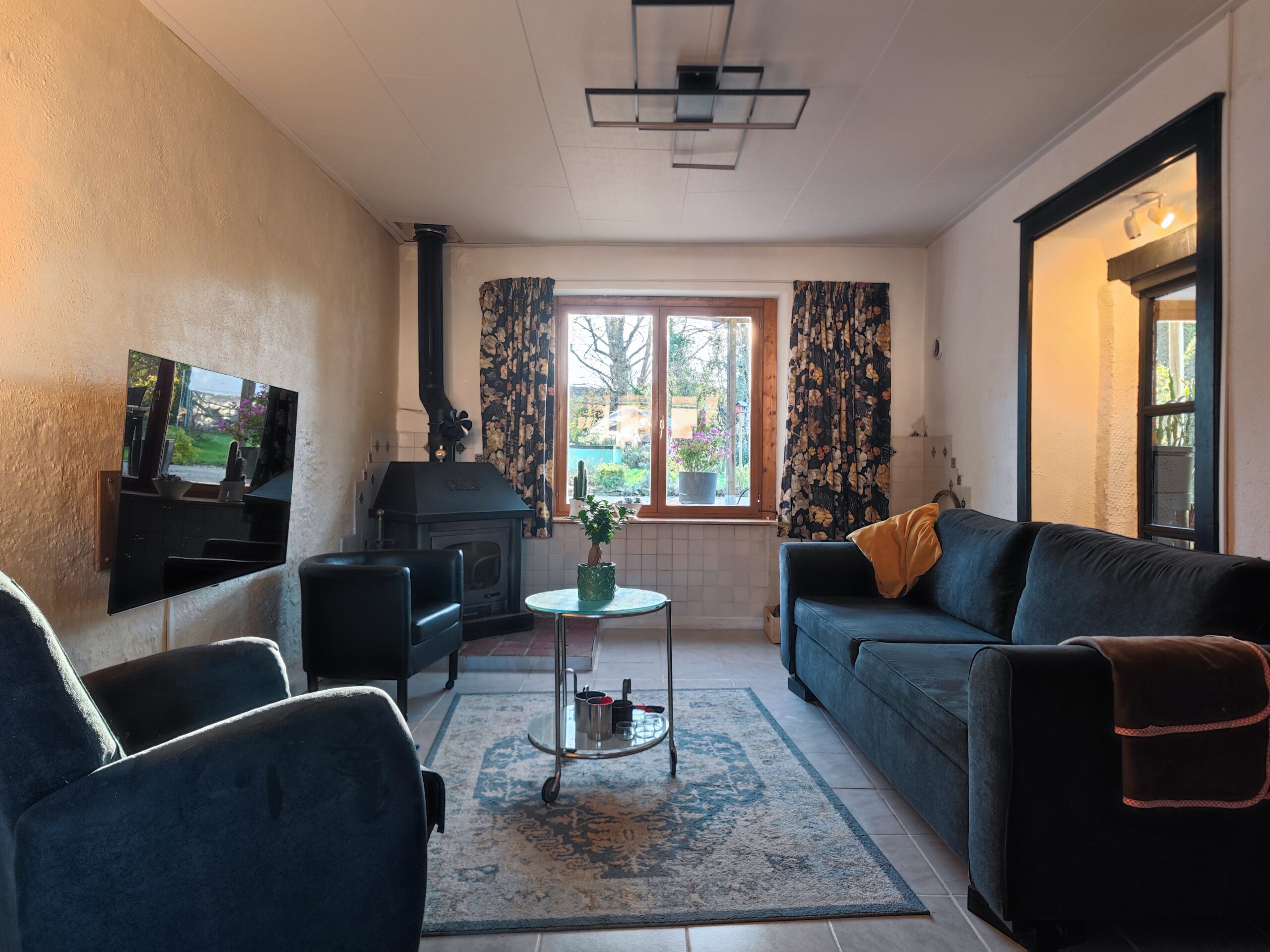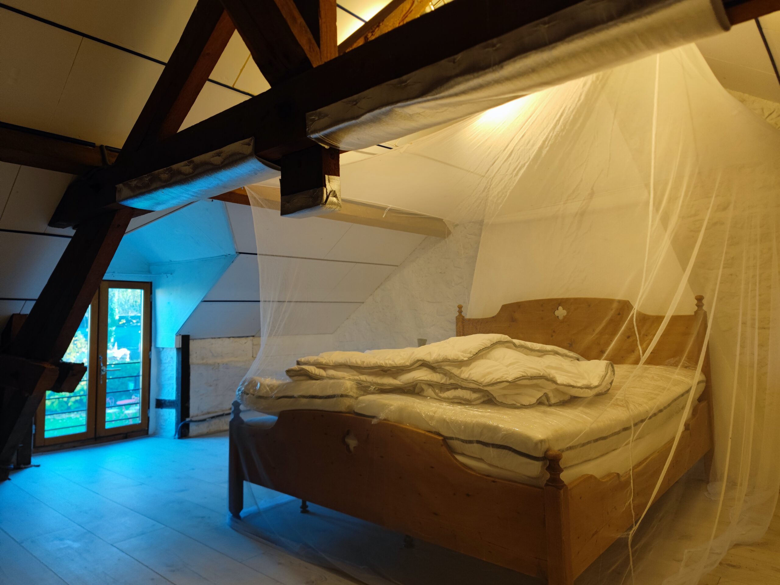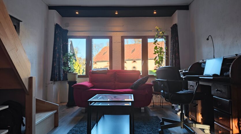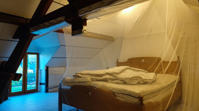 L’habitation principale d’une superficie de 115m2, se compose au RDC d’une cuisine semi-ouverte sur salle à manger, suivie d’un salon et d’un bureau. A l’étage, vous trouverez un vaste espace ouvert de 55m2 accueillant une chambre, une salle d’eau avec WC et un dressing. La maison est chauffée avec un poêle à granulés et un poêle à bois pour le RDC et une clim réversible pour l’étage. Double vitrage présent.