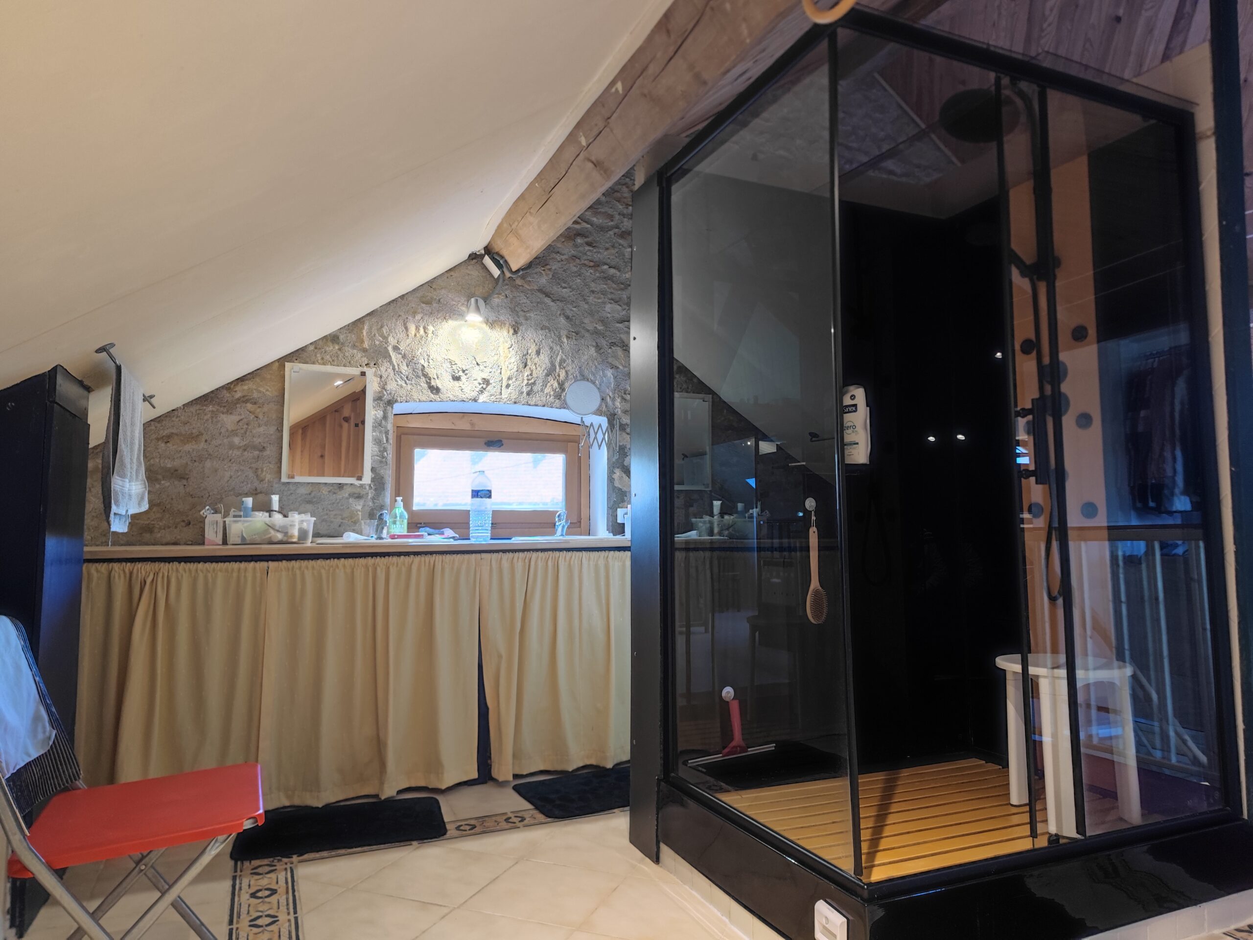 Le gîte, d’une superficie de 58m2, dispose d’une pièce de vie principale accueillant un coin cuisine ouvert sur le séjour. Une salle d’eau avec WC est également présente en RDC. A l’étage, une chambre mansardée. Chauffage avec un poêle à bois.