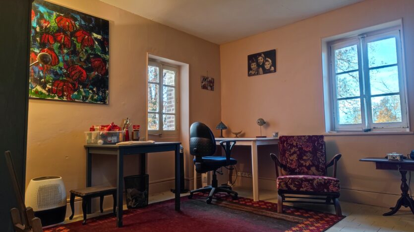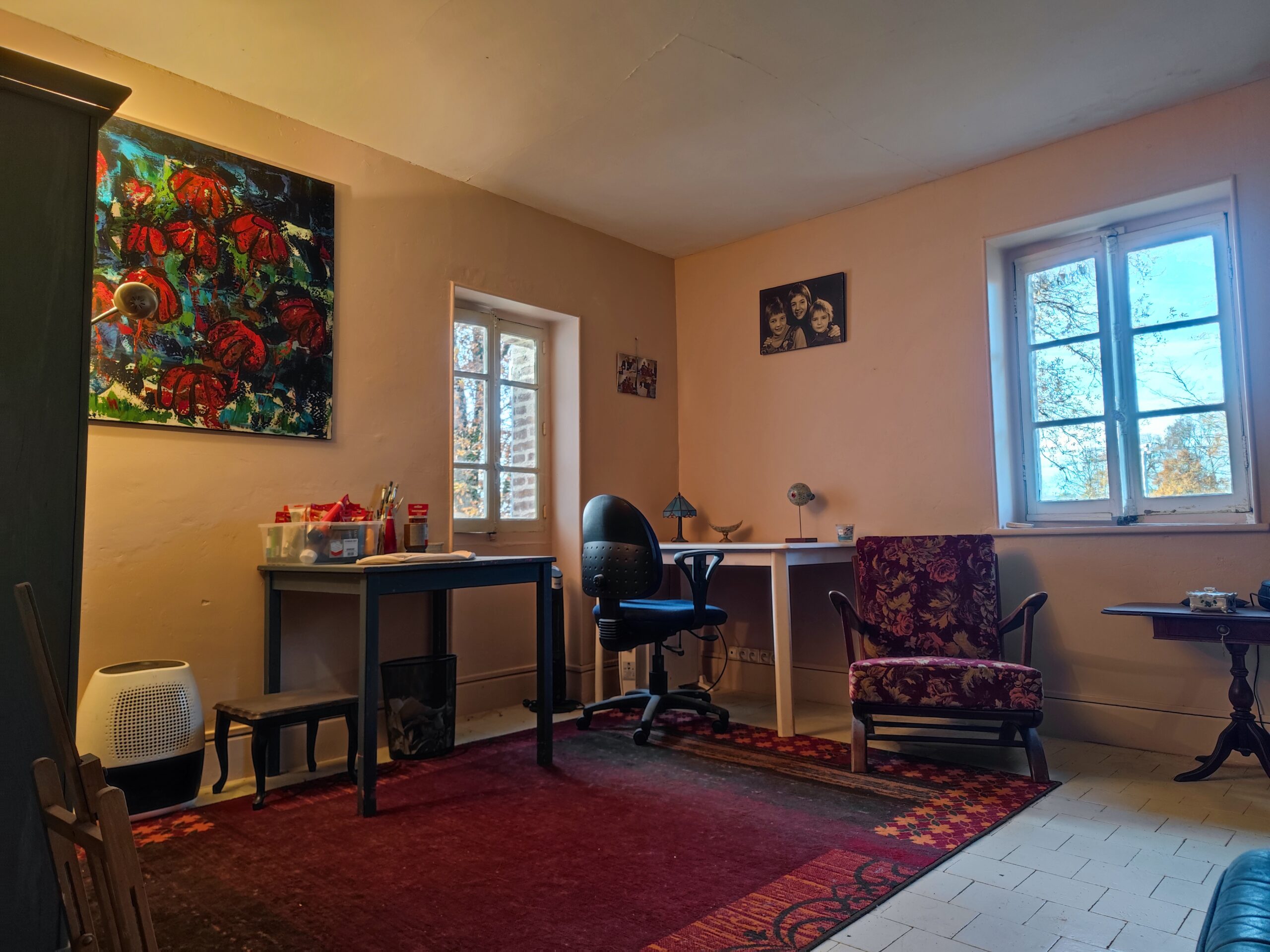 L’habitation est chauffée avec deux poêles à bois et des radiateurs électriques en appoint. La maison est également raccordée au tout à l’égout et à la fibre. Huisseries en simple vitrage et travaux à prévoir.