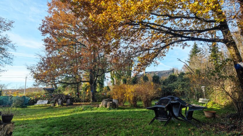 L’ensemble est entouré d’un beau jardin arboré avec une jolie vue sur les champs environnants.