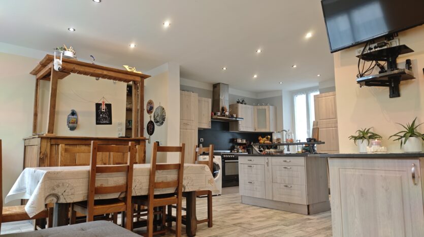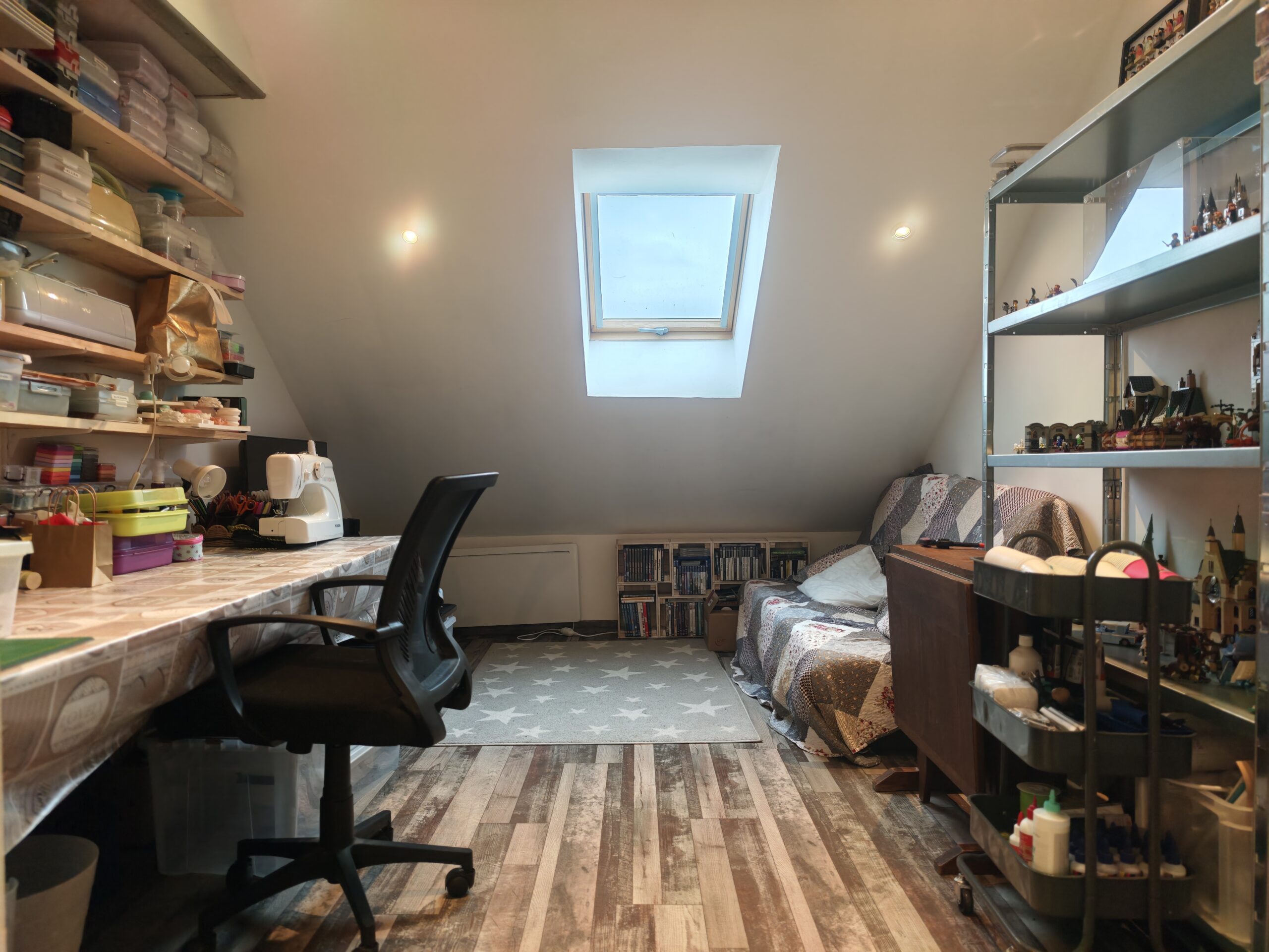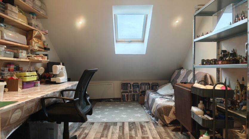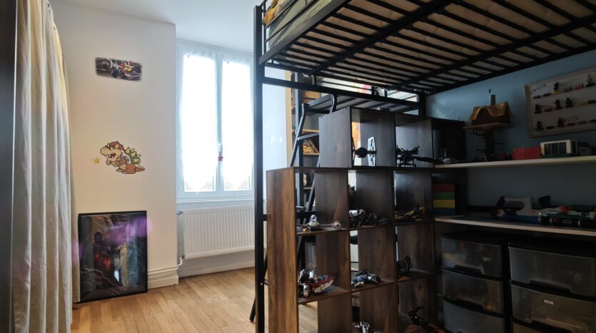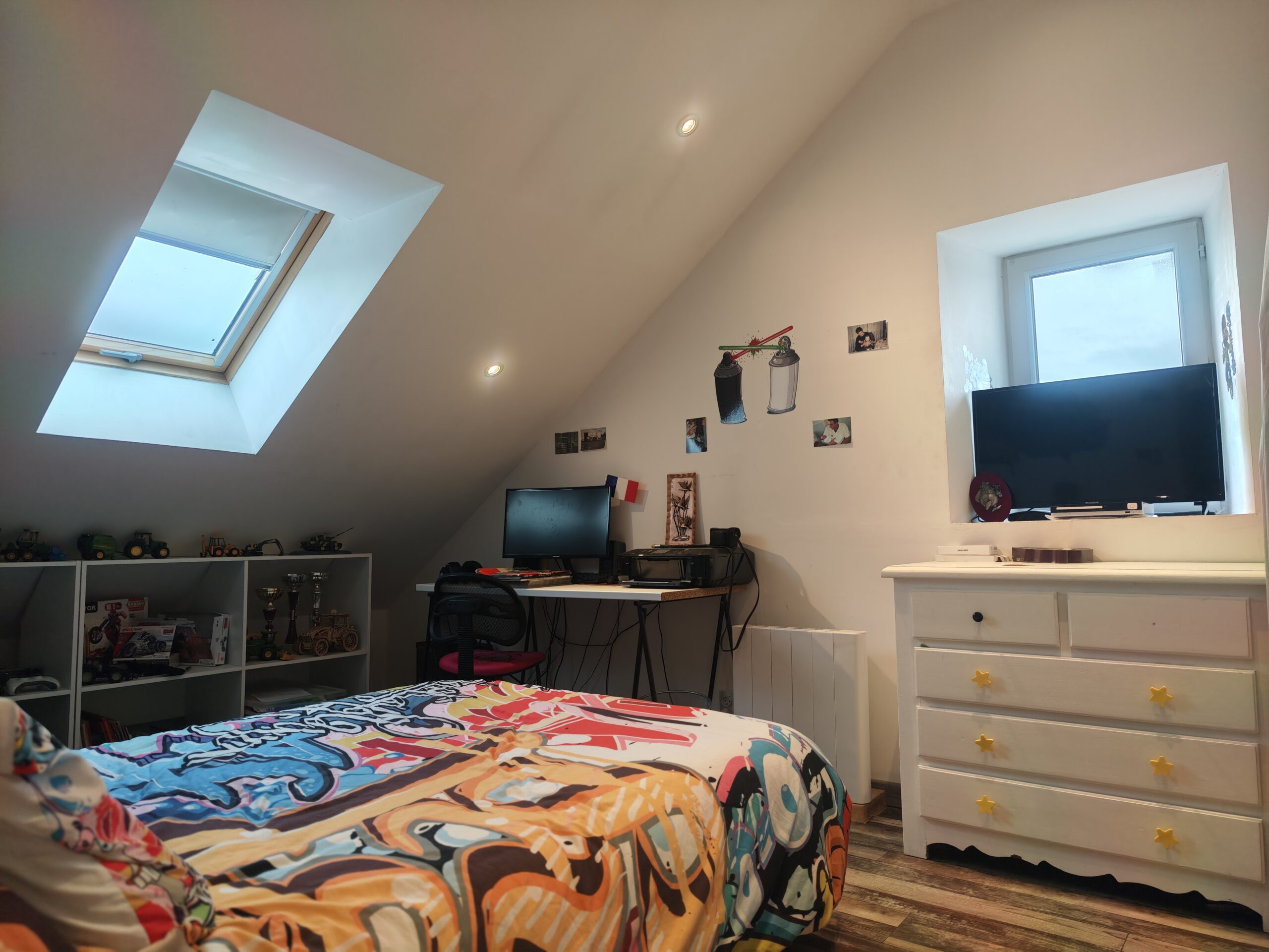 L’habitation est élevée sur 3 niveaux avec au rez-de-chaussée une grande pièce de vie de plus de 40m2 accueillant une cuisine ouverte, salle à manger et salon. Au premier étage, un palier dessert trois chambres de 9 à 13m2 ainsi qu’une salle d’eau avec WC. Au deuxième étage vous trouverez une quatrième chambre, un bureau ainsi qu’une pièce palière actuellement utilisé en atelier.