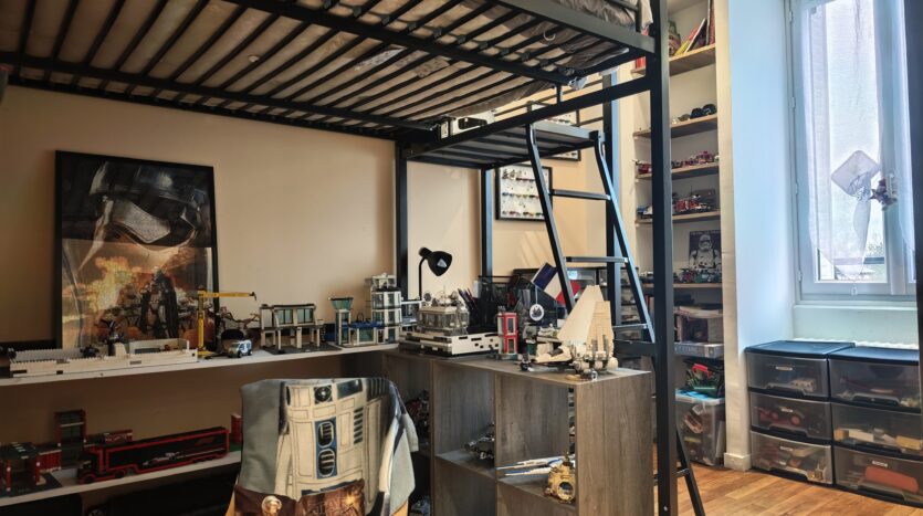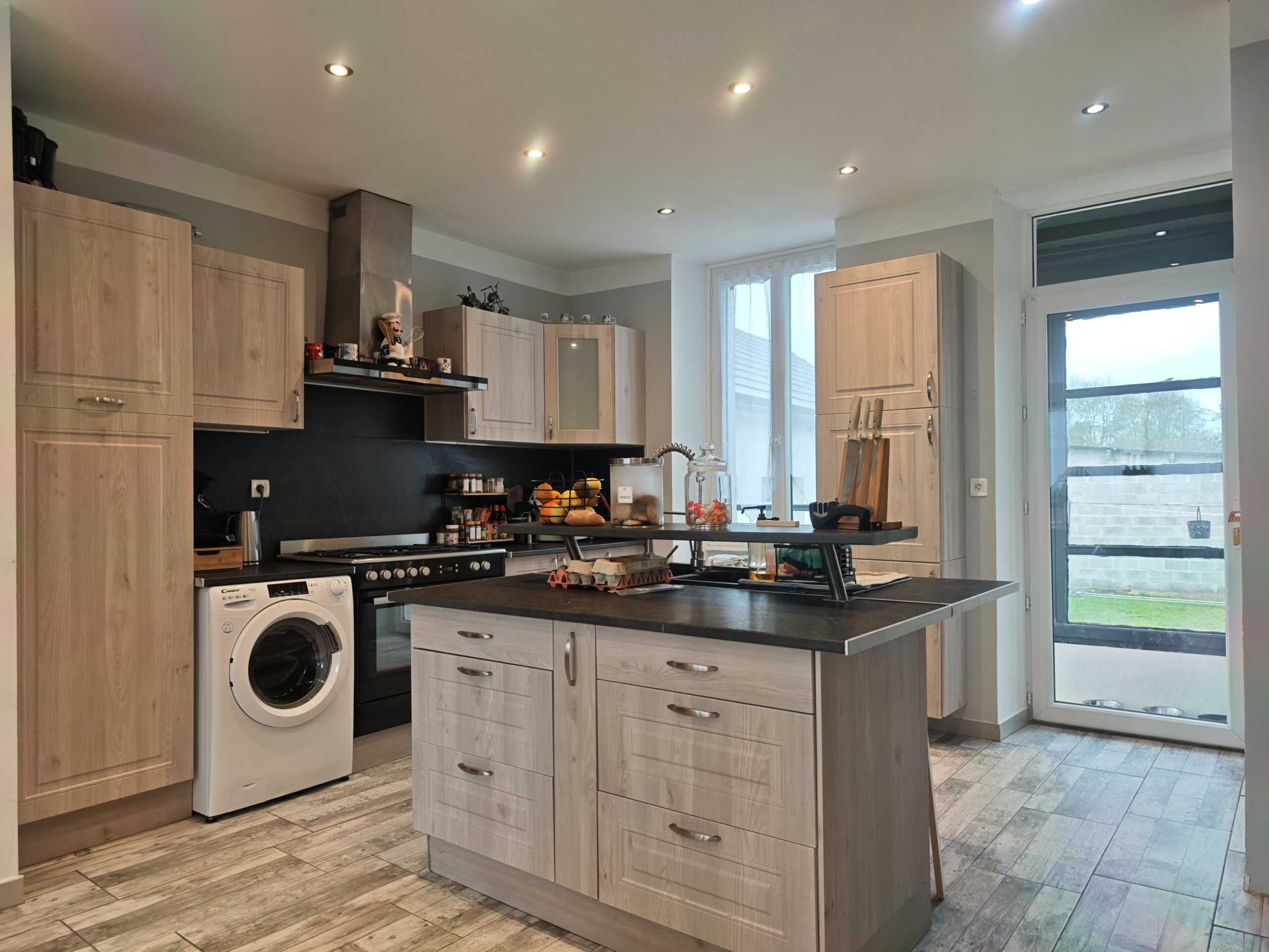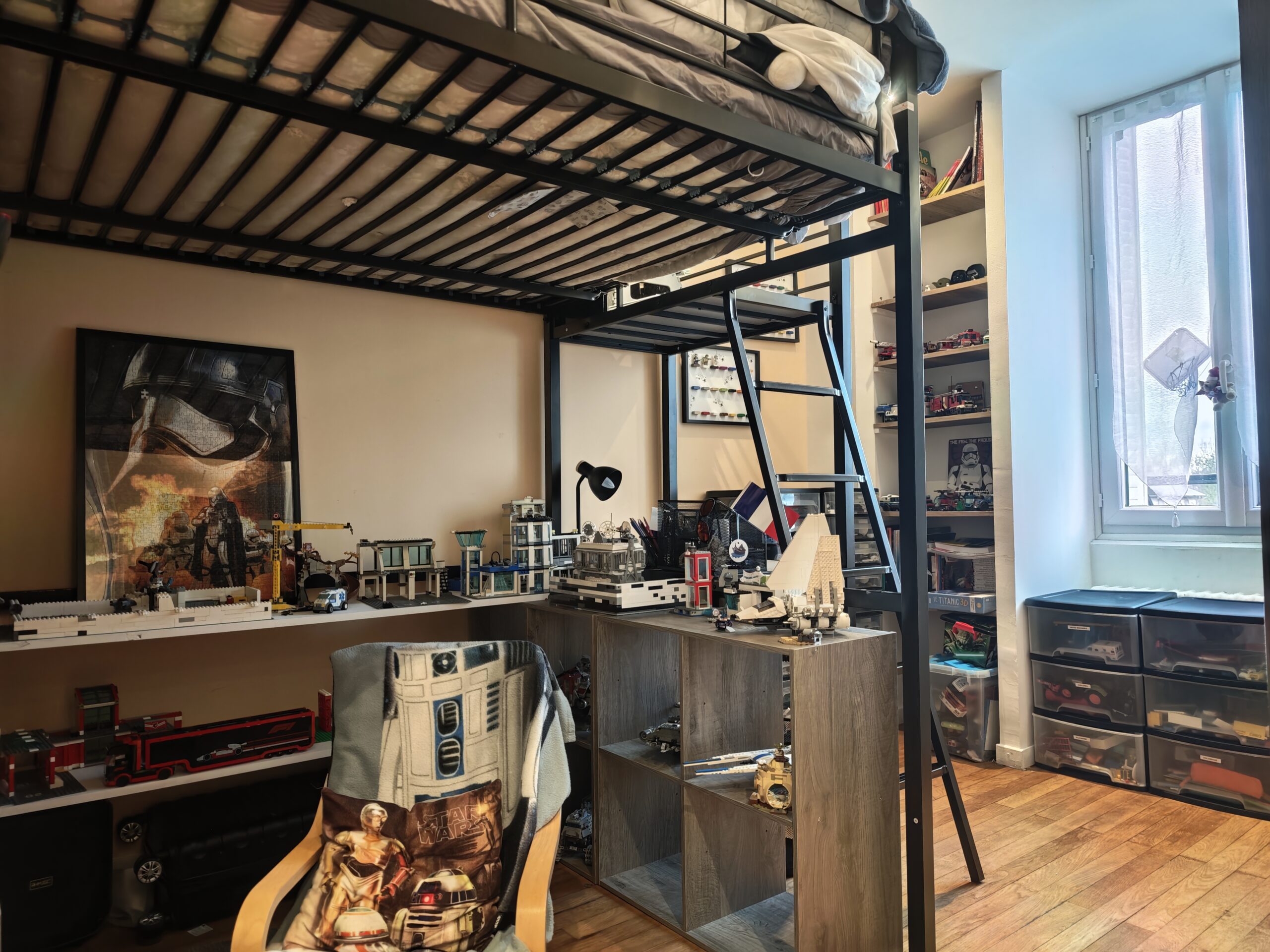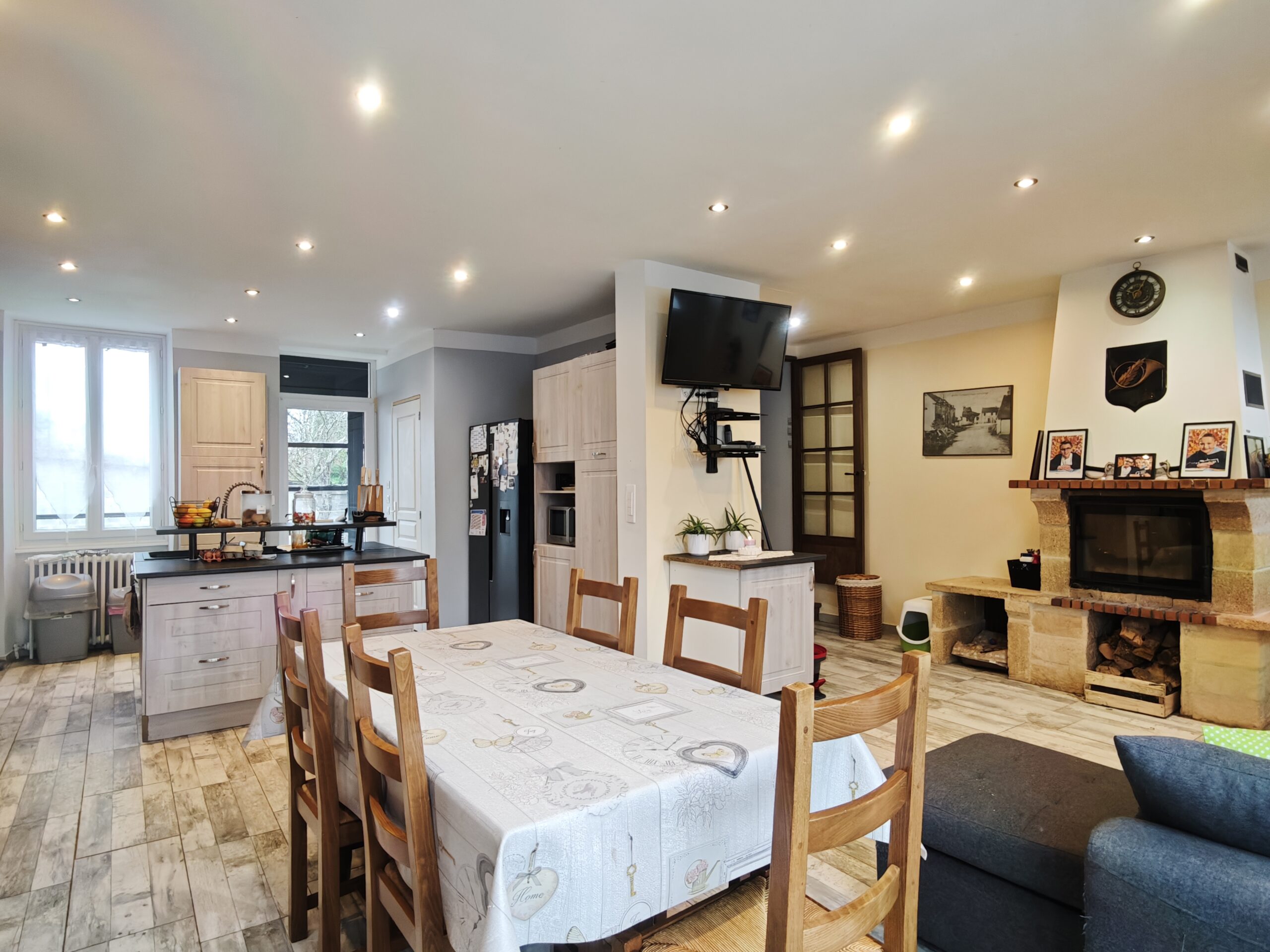L’habitation est élevée sur 3 niveaux avec au rez-de-chaussée une grande pièce de vie de plus de 40m2 accueillant une cuisine ouverte, salle à manger et salon. Au premier étage, un palier dessert trois chambres de 9 à 13m2 ainsi qu’une salle d’eau avec WC. Au deuxième étage vous trouverez une quatrième chambre, un bureau ainsi qu’une pièce palière actuellement utilisé en atelier.