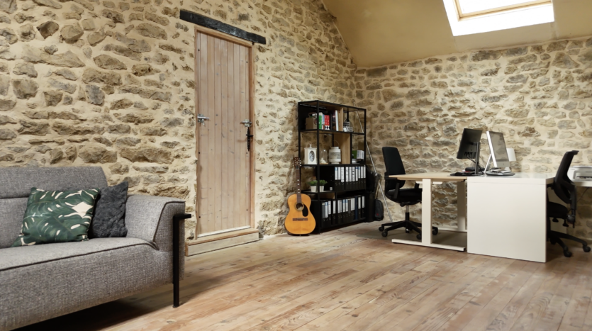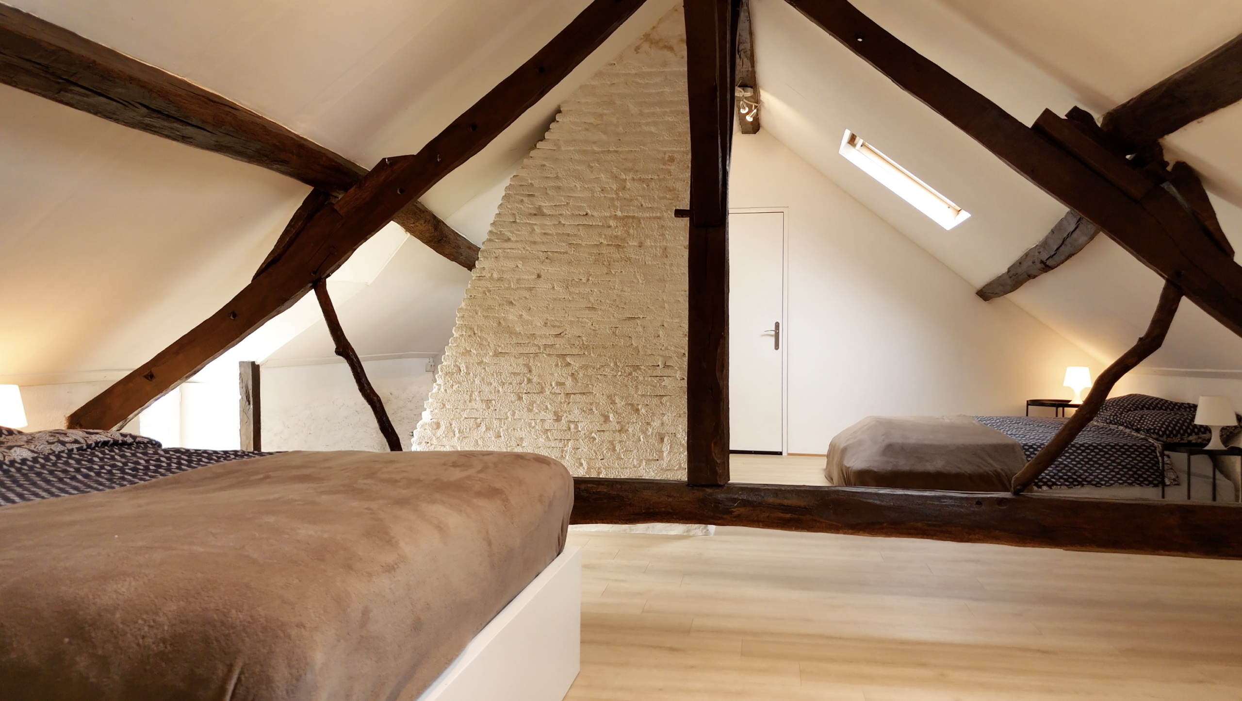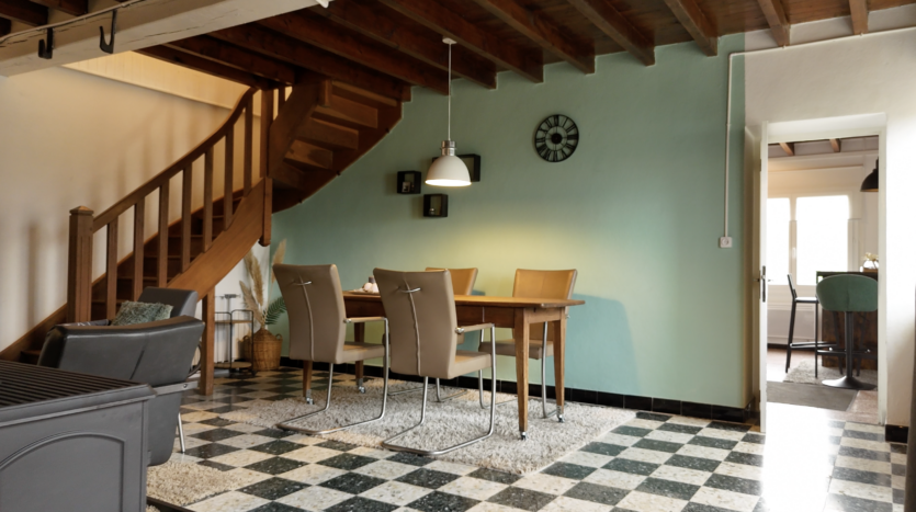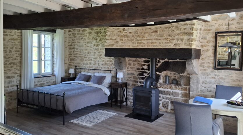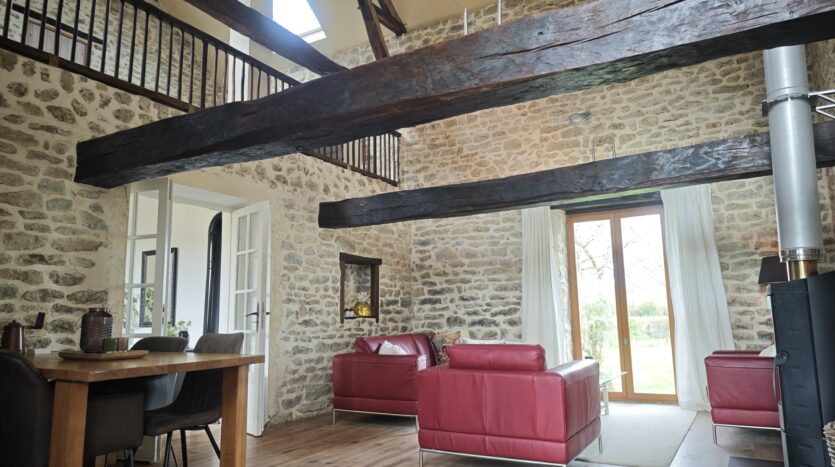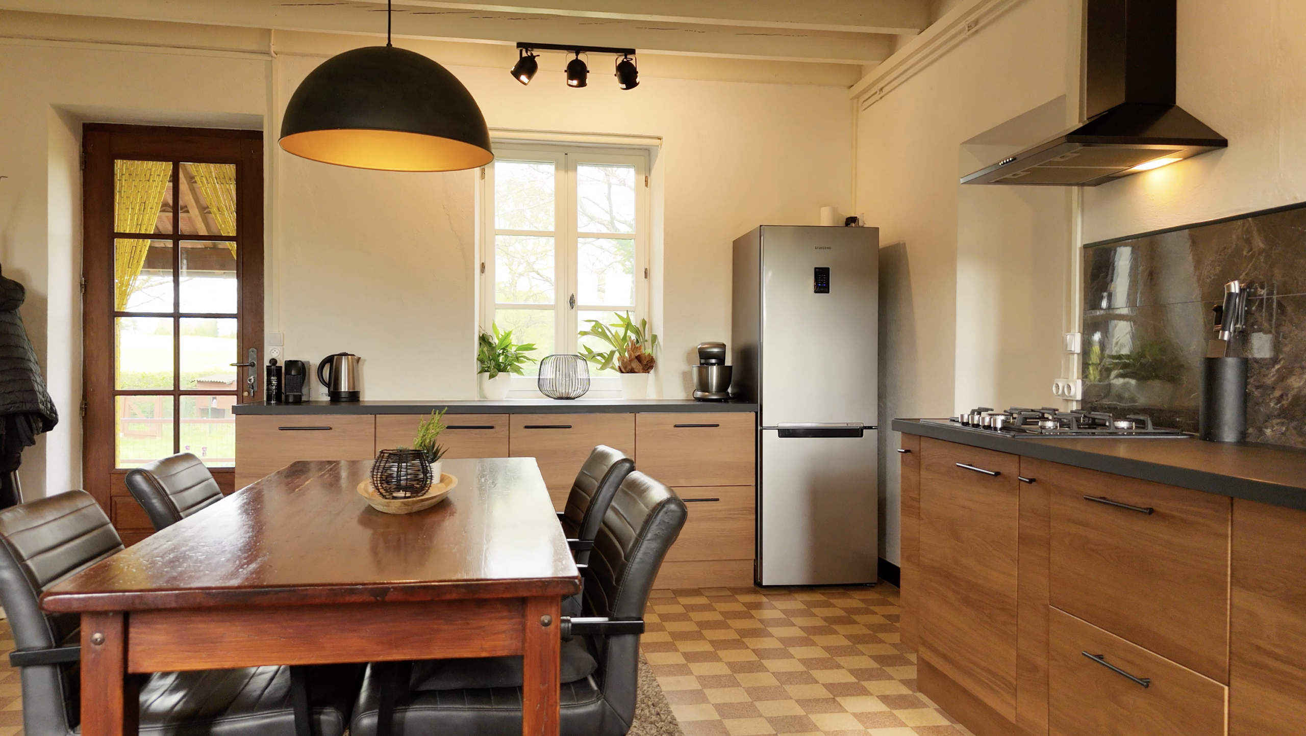 L’habitation principale, d’une superficie de 166m2, est composée d’un grand séjour en cathédrale, suivi d’un salon, d’une cuisine avec salle à manger, d’une chambre, d’une salle d’eau et d’un WC. A l’étage, un vaste palier actuellement utilisé en bureau dessert une grande chambre ainsi qu’ un grenier. Une grande terrasse couverte, très agréable est accessible directement depuis la cuisine. Dans le prolongement, vous trouverez également un petit gîte composé d’une pièce avec cuisine, séjour et chambre, suivi d’une salle d’eau avec WC. Cet espace peut facilement être loué ou reconnecté à l’habitation principale. Vous bénéficiez également d’un garage et des petits toits attenants.