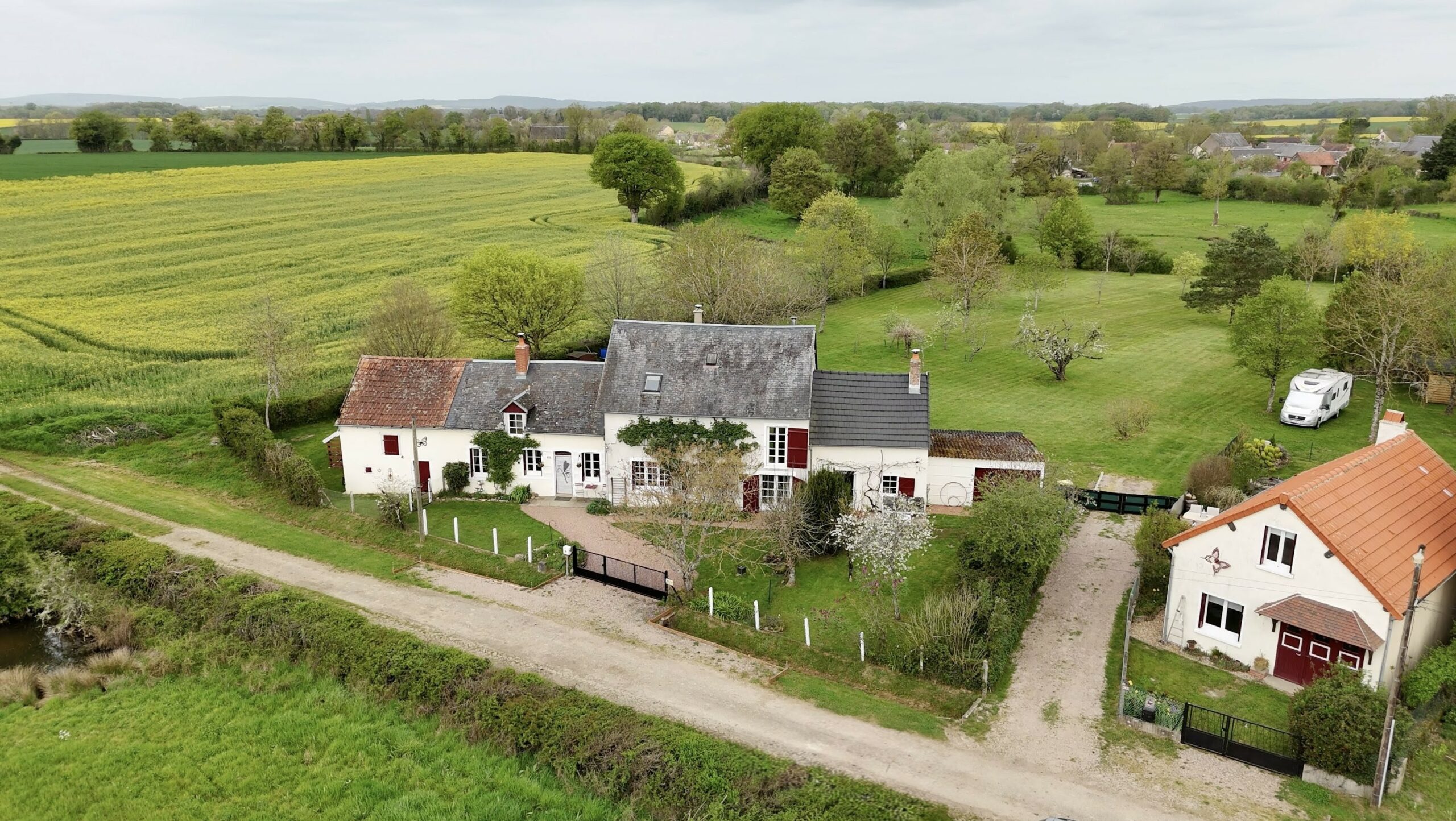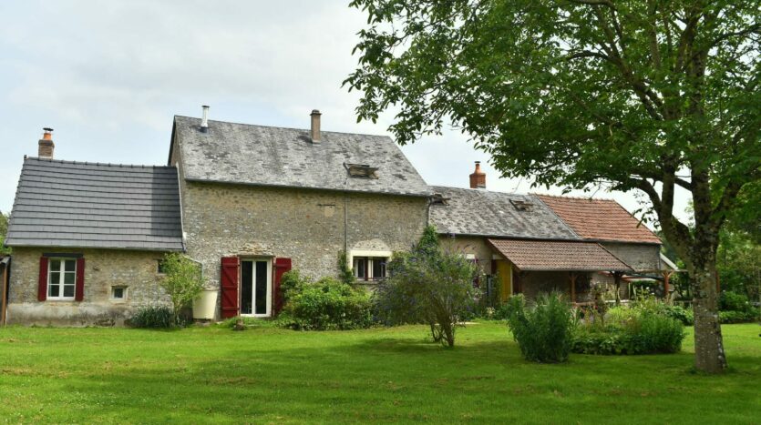 Rare à la vente, une belle propriété située sur la commune d’Alluy au fond d’une petite impasse. Composée de deux maisons d’habitations et d’un gîte, le tout édifié sur un beau parc arboré de 7165m2.