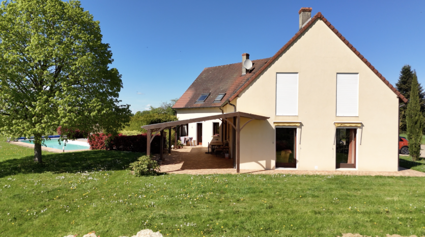 Grote architectenhuis op een perceel van meer dan een hectare, met zwembad en een mooi uitzicht. Gelegen in Cercy-la-Tour, met alle noodzakelijke voorzieningen (scholen, supermarkt, apotheek, artsen, treinstation…).