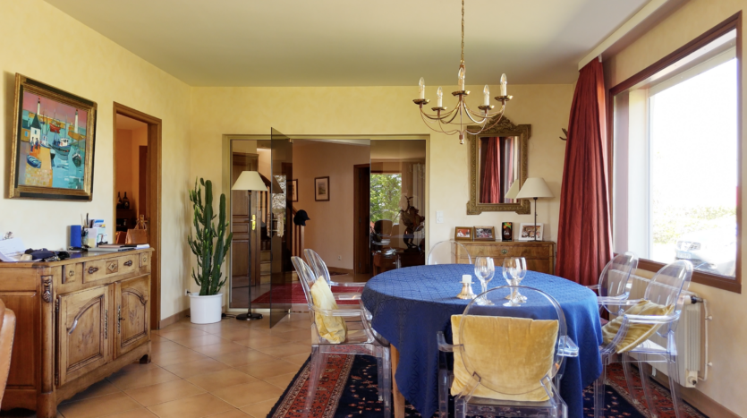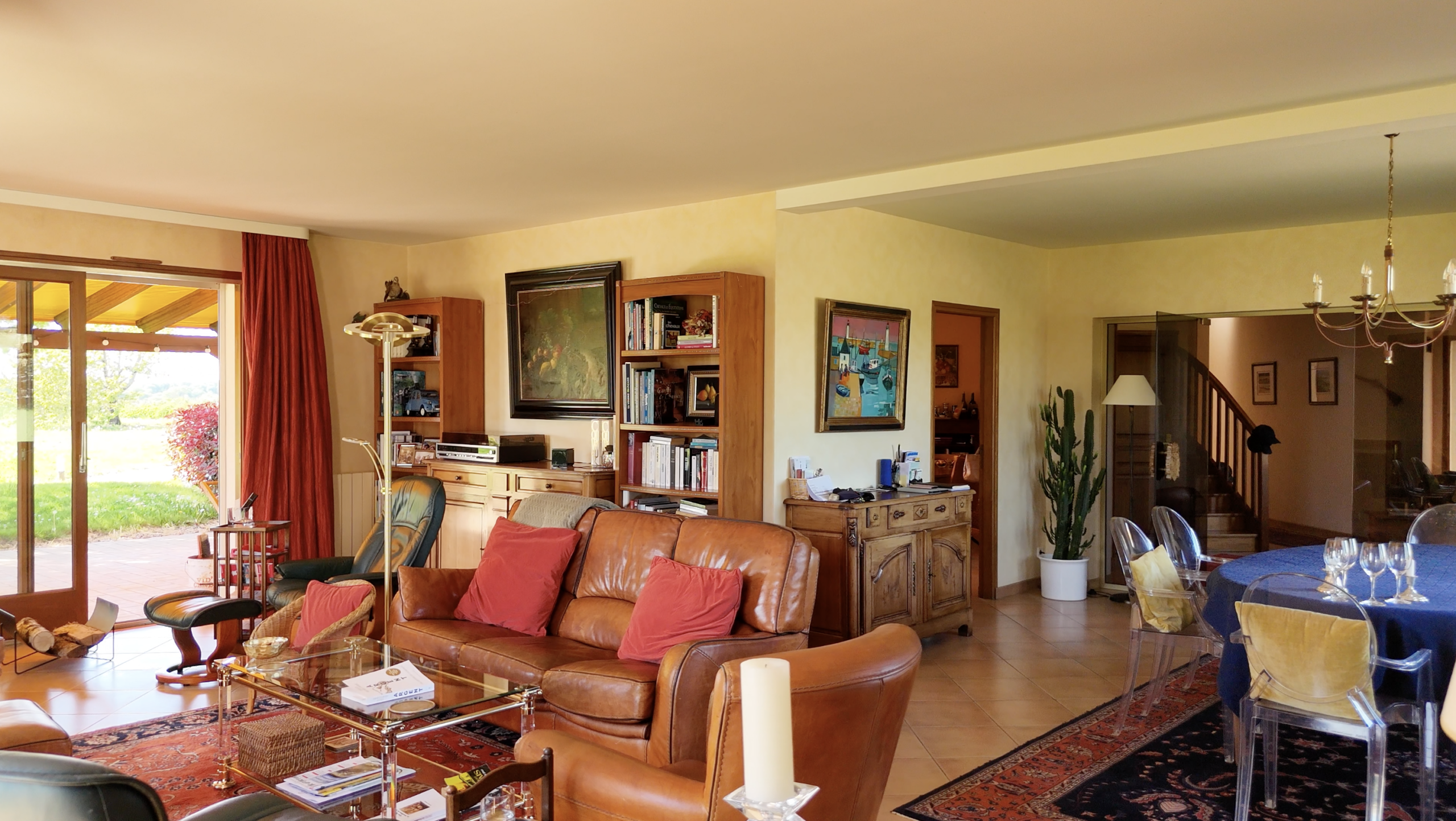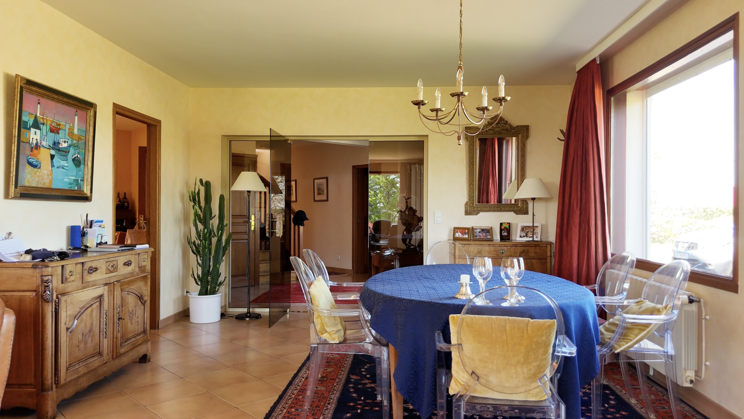 Met een woonoppervlakte van 300 m² biedt dit huis ruime kamers, met op de begane grond een entree die uitkomt op een grote woonkamer, een keuken, een bijkeuken en een suite met dressing en badkamer. Op de eerste verdieping leidt een overloop naar vier slaapkamers, een grote kamer en een tweede badkamer. Op elke verdieping is ook een apart toilet aanwezig. De kelder biedt plaats aan een grote garage voor drie auto's, gevolgd door een stookruimte en een geklimatiseerde wijnkelder.